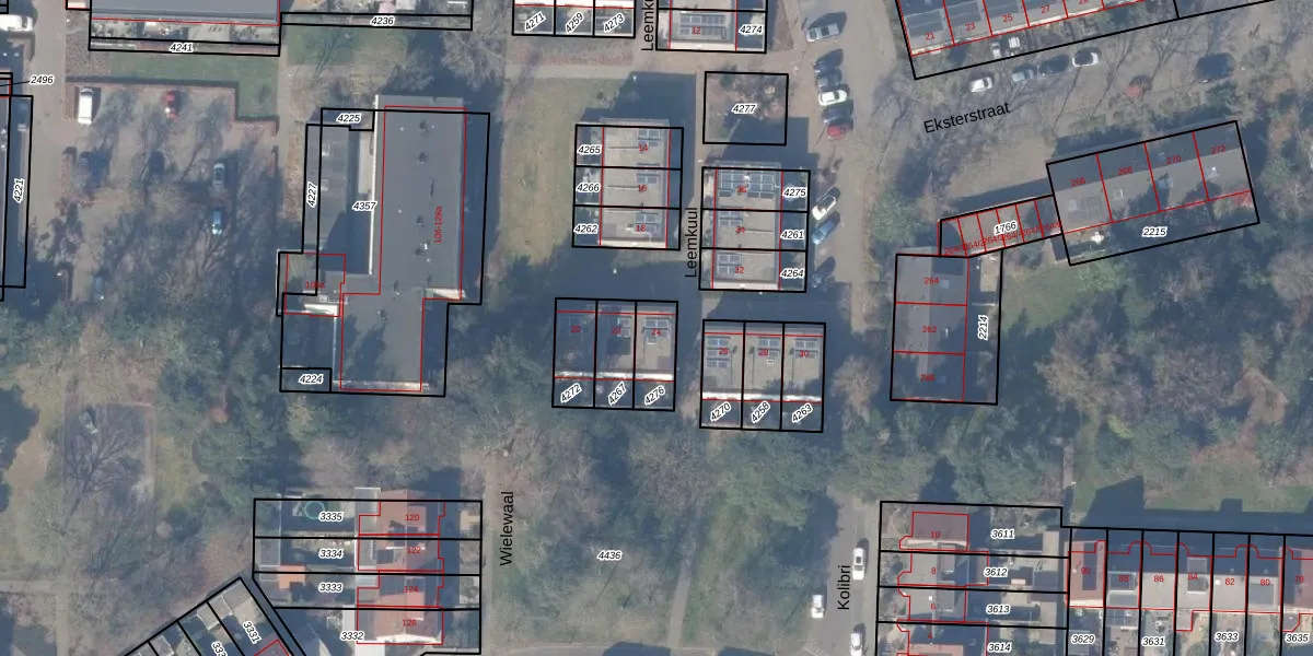 Gebruik de zoekbalk of klik op een perceel voor informatie over de adressen binnen dit perceel.