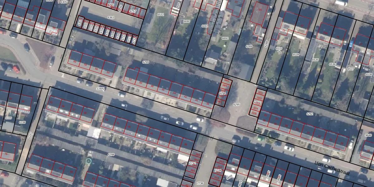 Het perceel waarop Lion Cachetstraat 42 staat heeft een oppervlakte van 2121 m². Dit is een zeer groot perceel. De perceeloppervlakte wordt geregistreerd door het Kadaster. Gedetailleerde informatie over de maten van dit perceel kunt u vinden in het rapport Kadastrale kaart met maatvoering van Lion Cachetstraat 42.