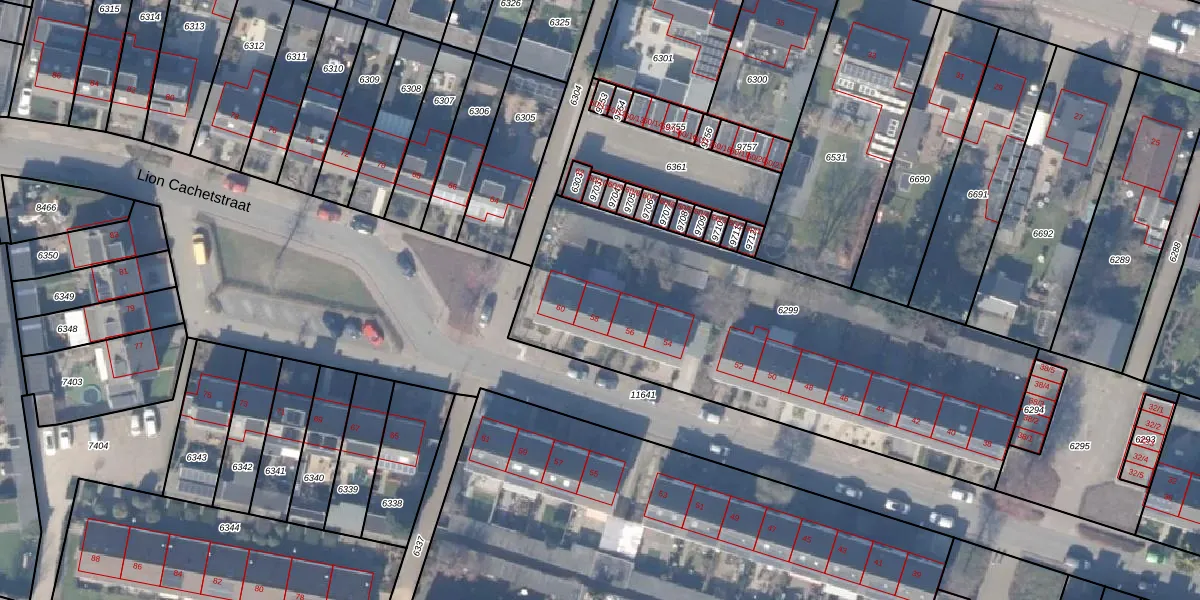 Het perceel waarop Lion Cachetstraat 58 staat heeft een oppervlakte van 2121 m². Dit is een zeer groot perceel. De perceeloppervlakte wordt geregistreerd door het Kadaster. Gedetailleerde informatie over de maten van dit perceel kunt u vinden in het rapport Kadastrale kaart met maatvoering van Lion Cachetstraat 58.