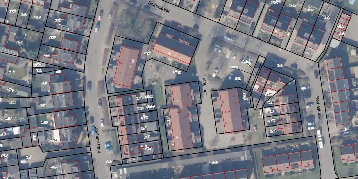 Het perceel waarop Luthulihof 4 staat heeft een oppervlakte van 690 m². Dit is een groot perceel. De perceeloppervlakte wordt geregistreerd door het Kadaster. Gedetailleerde informatie over de maten van dit perceel kunt u vinden in het rapport Kadastrale kaart met maatvoering van Luthulihof 4.