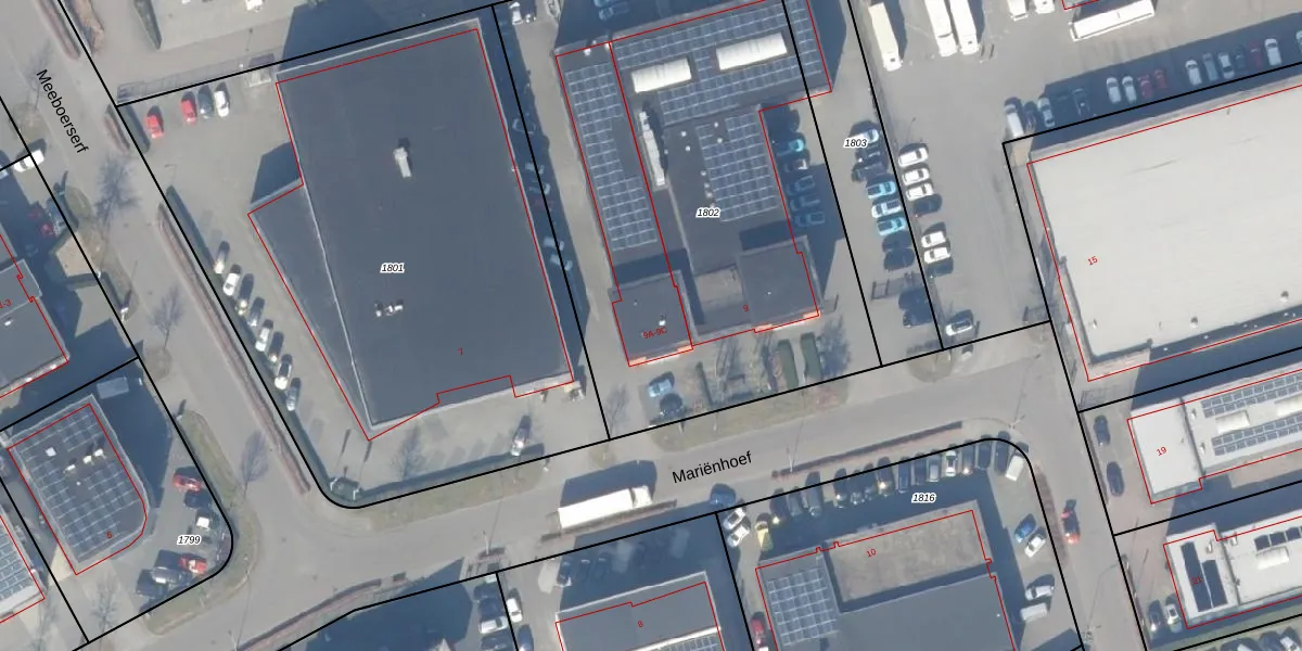 Het perceel waarop Mariënhoef 9-A staat heeft een oppervlakte van 2997 m². Dit is een zeer groot perceel. De perceeloppervlakte wordt geregistreerd door het Kadaster. Gedetailleerde informatie over de maten van dit perceel kunt u vinden in het rapport Kadastrale kaart met maatvoering van Mariënhoef 9-A.