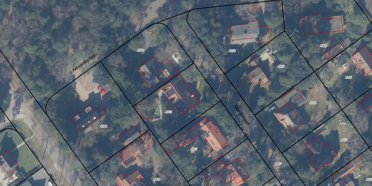 Gebruik de zoekbalk of klik op een perceel voor informatie over de adressen binnen dit perceel.