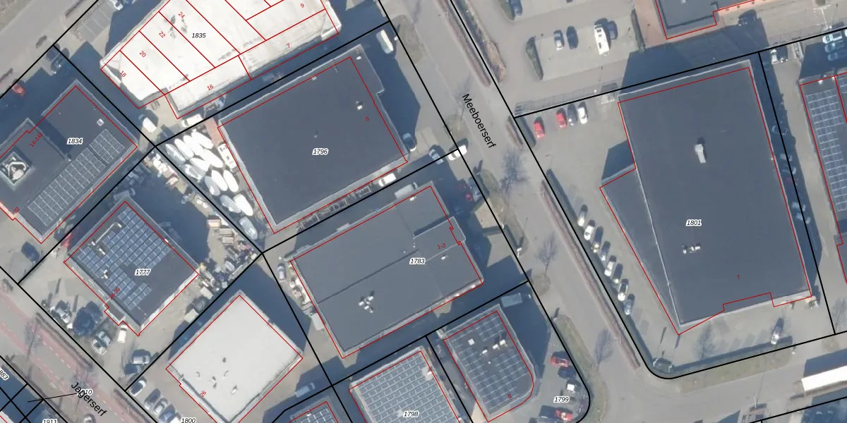 Het perceel waarop Meeboerserf 3 staat heeft een oppervlakte van 1860 m². Dit is een zeer groot perceel. De perceeloppervlakte wordt geregistreerd door het Kadaster. Gedetailleerde informatie over de maten van dit perceel kunt u vinden in het rapport Kadastrale kaart met maatvoering van Meeboerserf 3.