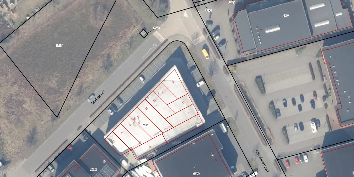 Middelerf 32 is gelegen op kadastraal perceel EML00K1835. Deze kadastrale aanduiding is uniek en wordt gebruikt door het Kadaster om eigendomsrechten en andere zakelijke rechten vast te leggen. Het perceel maakt onderdeel uit van de kadastrale gemeente Ermelo.