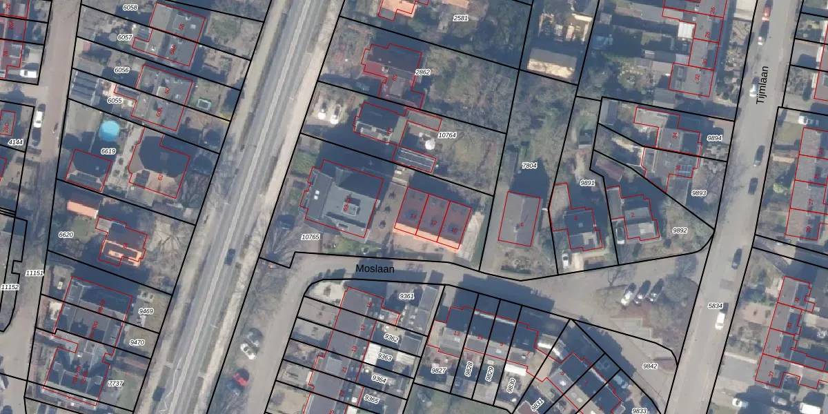 Het perceel waarop Moslaan 14 staat heeft een oppervlakte van 1190 m². Dit is een zeer groot perceel. De perceeloppervlakte wordt geregistreerd door het Kadaster. Gedetailleerde informatie over de maten van dit perceel kunt u vinden in het rapport Kadastrale kaart met maatvoering van Moslaan 14.