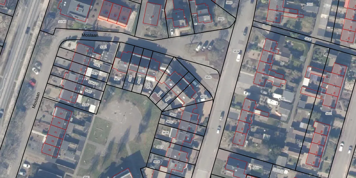 Gebruik de zoekbalk of klik op een perceel voor informatie over de adressen binnen dit perceel.
