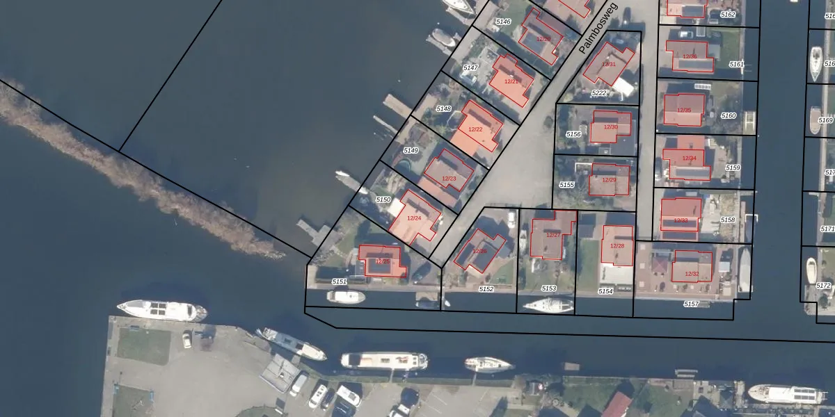 Palmbosweg 12-24 is gelegen op kadastraal perceel EML00I5150. Deze kadastrale aanduiding is uniek en wordt gebruikt door het Kadaster om eigendomsrechten en andere zakelijke rechten vast te leggen. Het perceel maakt onderdeel uit van de kadastrale gemeente Ermelo.