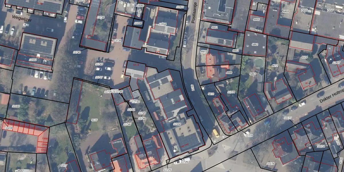 Het perceel waarop Postlaantje 30 staat heeft een oppervlakte van 1318 m². Dit is een zeer groot perceel. De perceeloppervlakte wordt geregistreerd door het Kadaster. Gedetailleerde informatie over de maten van dit perceel kunt u vinden in het rapport Kadastrale kaart met maatvoering van Postlaantje 30.