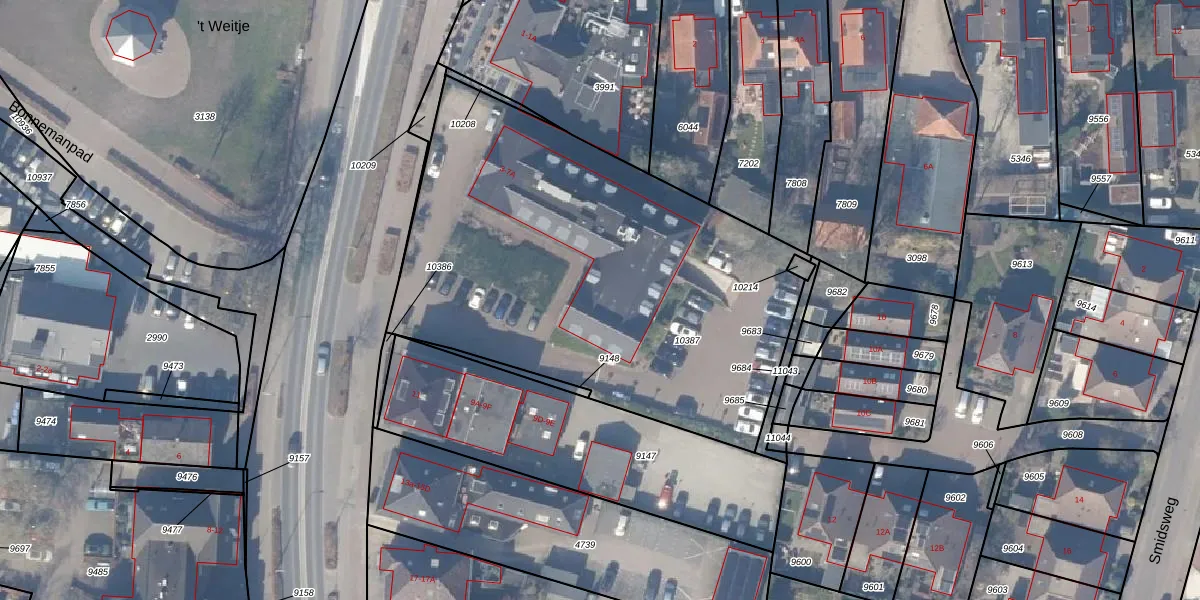 Het perceel waarop het adres ligt is EML00-F-10387. De afkorting 'EML00' staat voor kadastrale gemeente Ermelo. De gemiddelde perceelgrootte in Ermelo is 5297 m². Dit perceel is kleiner: de perceeloppervlakte bedraagt 2520 m². De grootste perceeloppervlakte in de kadastrale gemeente is 3,90 km². De kleinste oppervlakte bedraagt 0 m². Op het perceel zijn 8 adressen aanwezig. De huidige grenzen van het perceel zijn digitaal in de Basisregistratie Kadaster (BRK) geregistreerd op 02-03-2009.