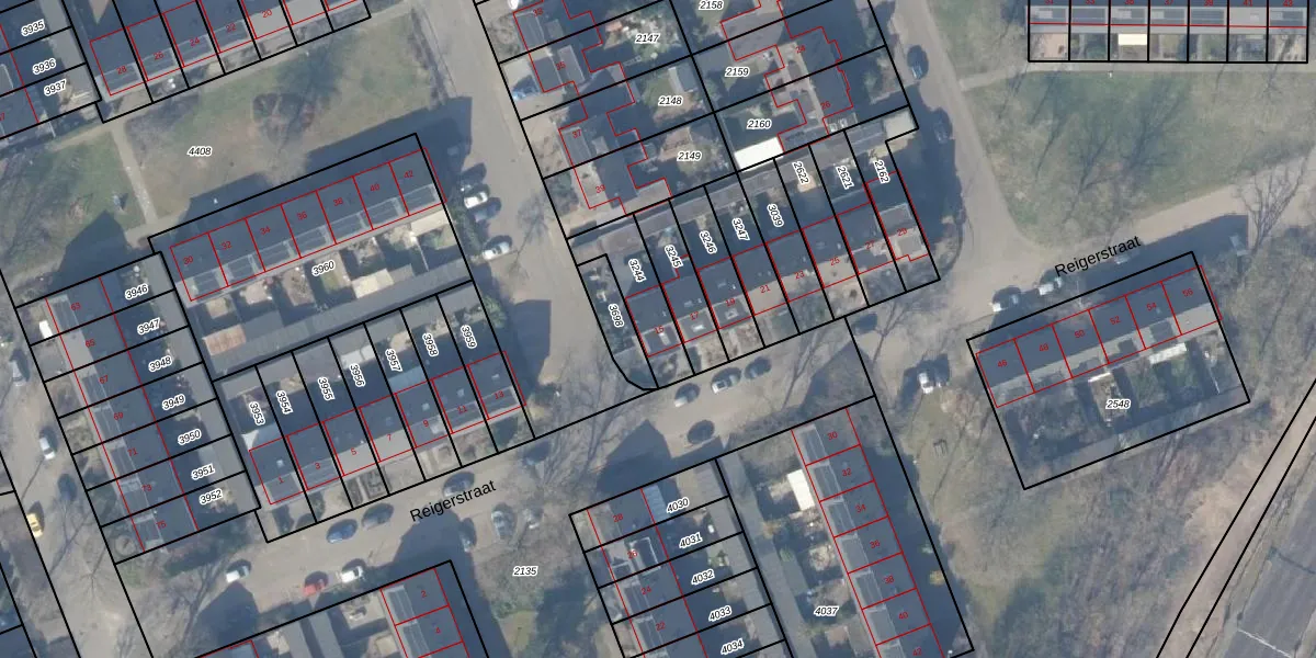 Gebruik de zoekbalk of klik op een perceel voor informatie over de adressen binnen dit perceel.