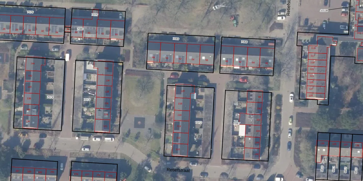 Het perceel waarop Retiefstraat 120 staat heeft een oppervlakte van 1019 m². Dit is een zeer groot perceel. De perceeloppervlakte wordt geregistreerd door het Kadaster. Gedetailleerde informatie over de maten van dit perceel kunt u vinden in het rapport Kadastrale kaart met maatvoering van Retiefstraat 120.