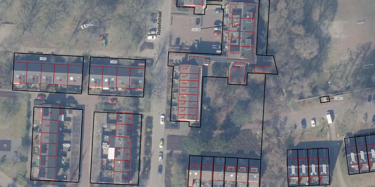 Het perceel waarop Retiefstraat 121 staat heeft een oppervlakte van 3557 m². Dit is een zeer groot perceel. De perceeloppervlakte wordt geregistreerd door het Kadaster. Gedetailleerde informatie over de maten van dit perceel kunt u vinden in het rapport Kadastrale kaart met maatvoering van Retiefstraat 121.