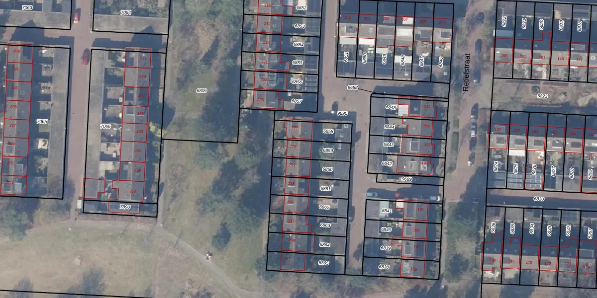 Gebruik de zoekbalk of klik op een perceel voor informatie over de adressen binnen dit perceel.