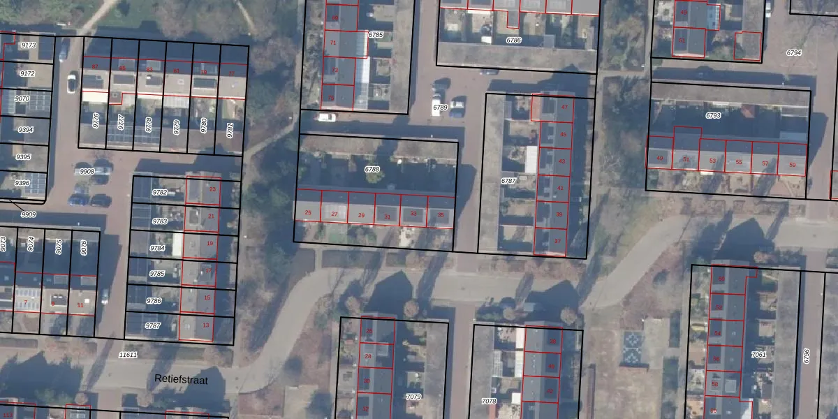 Het perceel waarop Retiefstraat 33 staat heeft een oppervlakte van 992 m². Dit is een groot perceel. De perceeloppervlakte wordt geregistreerd door het Kadaster. Gedetailleerde informatie over de maten van dit perceel kunt u vinden in het rapport Kadastrale kaart met maatvoering van Retiefstraat 33.