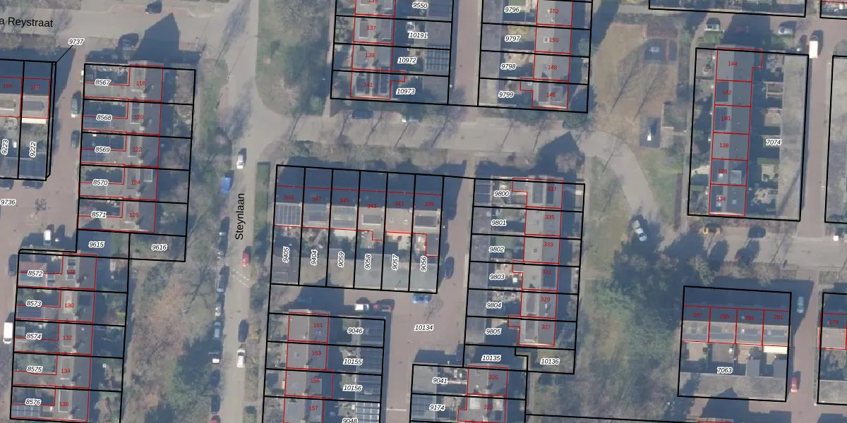 Gebruik de zoekbalk of klik op een perceel voor informatie over de adressen binnen dit perceel.