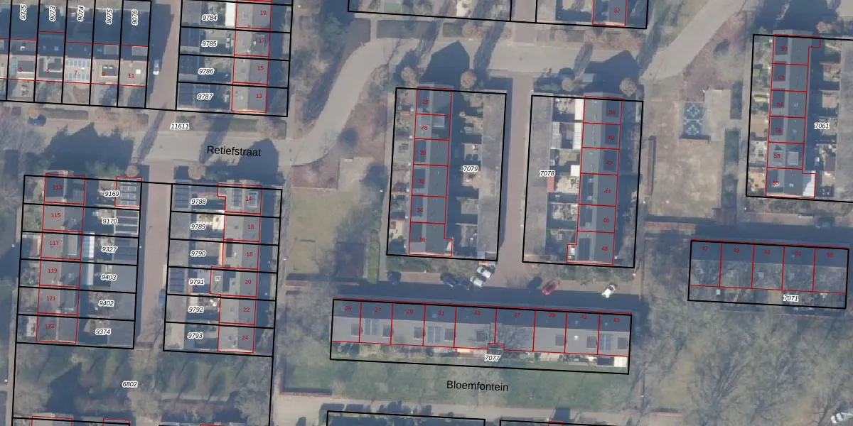 Het perceel waarop Retiefstraat 34 staat heeft een oppervlakte van 1021 m². Dit is een zeer groot perceel. De perceeloppervlakte wordt geregistreerd door het Kadaster. Gedetailleerde informatie over de maten van dit perceel kunt u vinden in het rapport Kadastrale kaart met maatvoering van Retiefstraat 34.