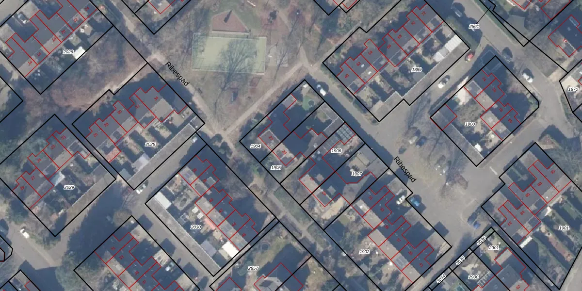 Het perceel waarop Ribespad 25 staat heeft een oppervlakte van 310 m². Dit is een groot perceel. De perceeloppervlakte wordt geregistreerd door het Kadaster. Gedetailleerde informatie over de maten van dit perceel kunt u vinden in het rapport Kadastrale kaart met maatvoering van Ribespad 25.