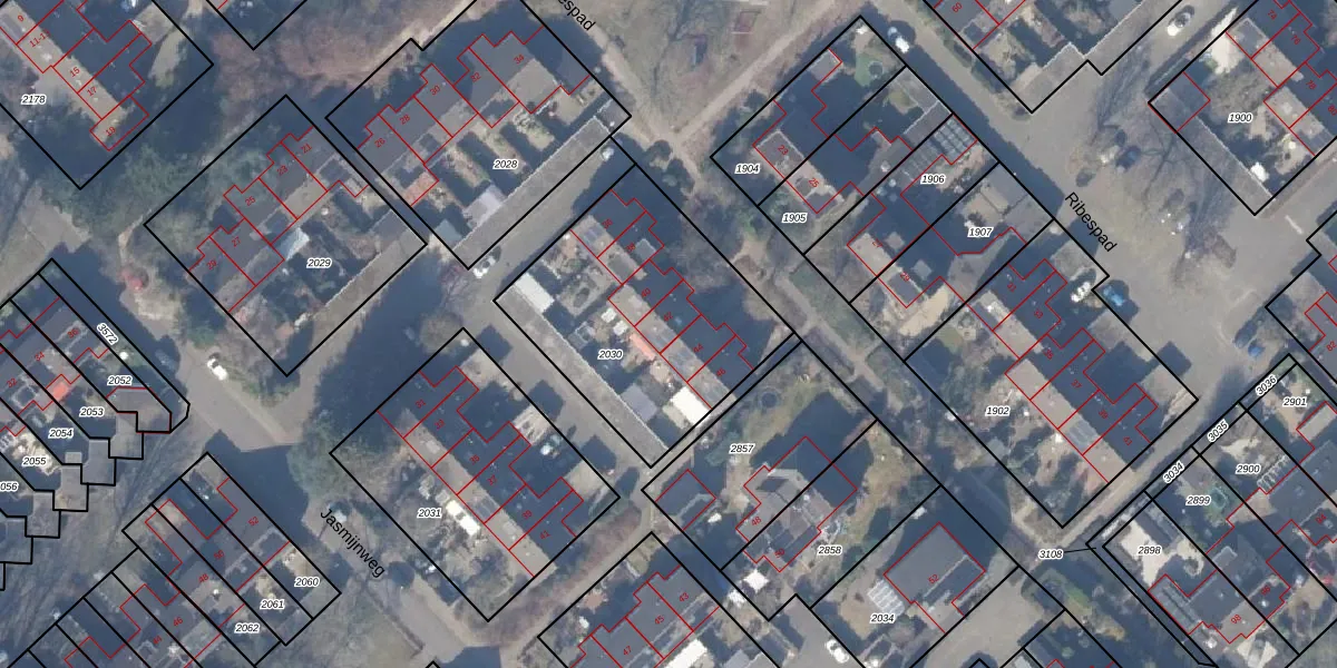 Het perceel waarop Ribespad 42 staat heeft een oppervlakte van 1020 m². Dit is een zeer groot perceel. De perceeloppervlakte wordt geregistreerd door het Kadaster. Gedetailleerde informatie over de maten van dit perceel kunt u vinden in het rapport Kadastrale kaart met maatvoering van Ribespad 42.