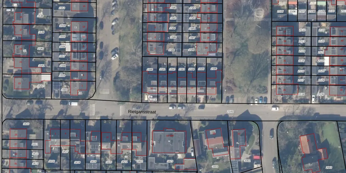 Het perceel waarop Rietgansstraat 15 staat heeft een oppervlakte van 150 m². Dit is een middelgroot perceel. De perceeloppervlakte wordt geregistreerd door het Kadaster. Gedetailleerde informatie over de maten van dit perceel kunt u vinden in het rapport Kadastrale kaart met maatvoering van Rietgansstraat 15.