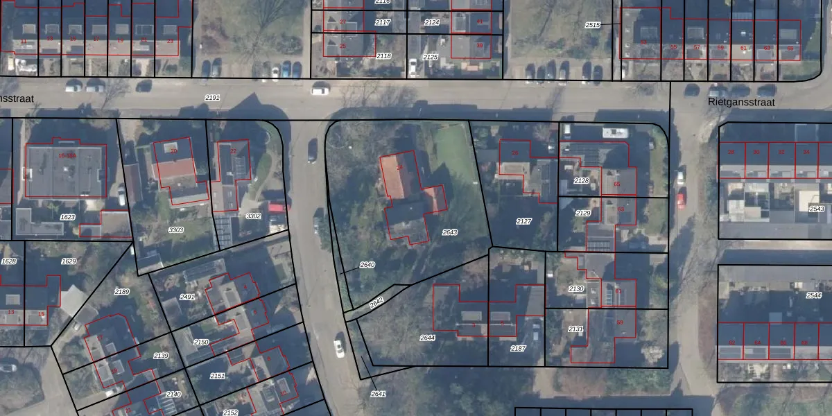 Gebruik de zoekbalk of klik op een perceel voor informatie over de adressen binnen dit perceel.