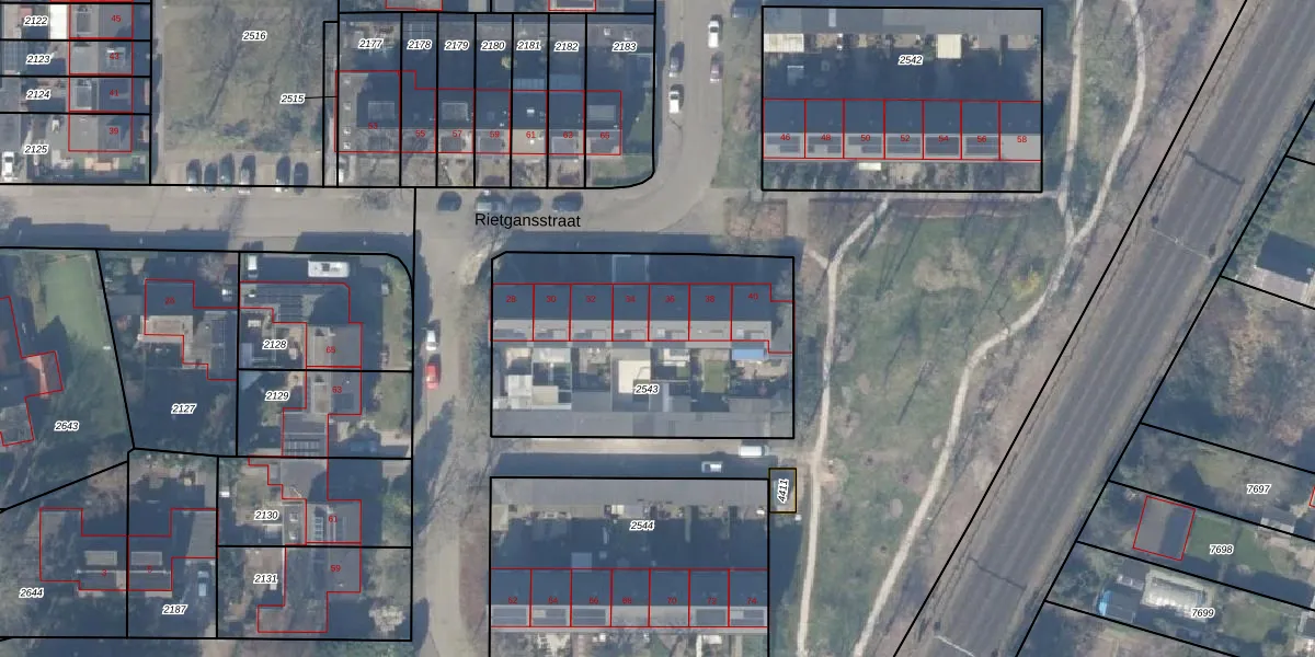 Het perceel waarop Rietgansstraat 36 staat heeft een oppervlakte van 1273 m². Dit is een zeer groot perceel. De perceeloppervlakte wordt geregistreerd door het Kadaster. Gedetailleerde informatie over de maten van dit perceel kunt u vinden in het rapport Kadastrale kaart met maatvoering van Rietgansstraat 36.