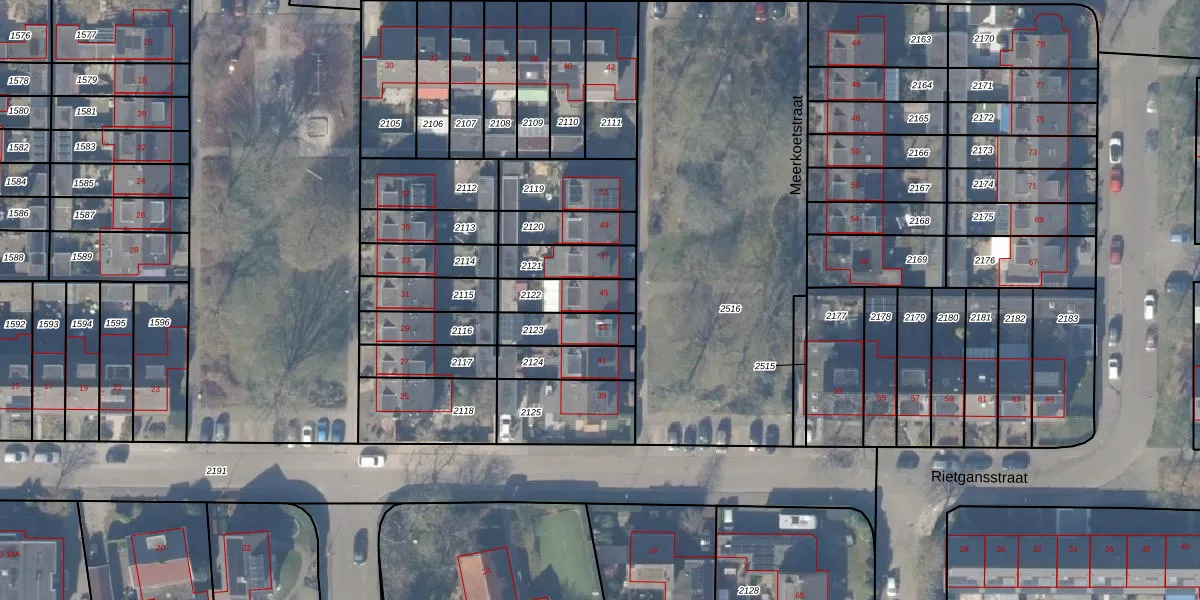 Het perceel waarop Rietgansstraat 45 staat heeft een oppervlakte van 130 m². Dit is een middelgroot perceel. De perceeloppervlakte wordt geregistreerd door het Kadaster. Gedetailleerde informatie over de maten van dit perceel kunt u vinden in het rapport Kadastrale kaart met maatvoering van Rietgansstraat 45.