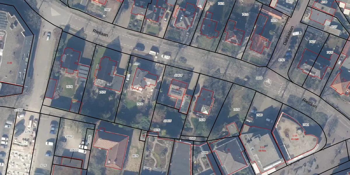 Gebruik de zoekbalk of klik op een perceel voor informatie over de adressen binnen dit perceel.