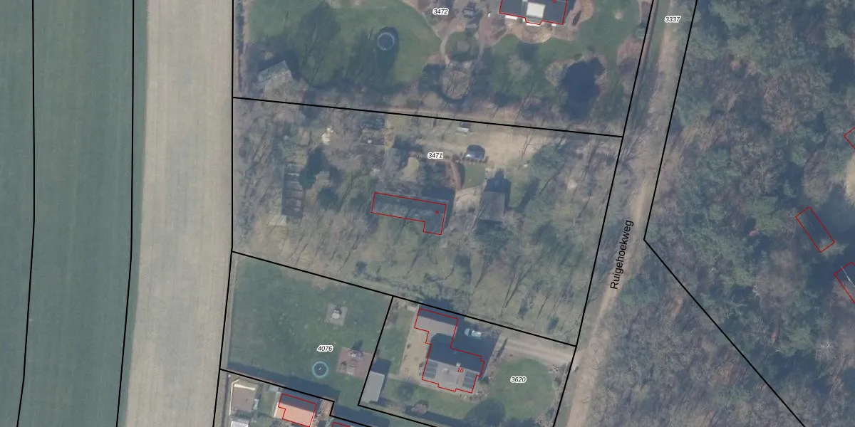 Het perceel waarop Ruigehoekweg 8 staat heeft een oppervlakte van 3735 m². Dit is een zeer groot perceel. De perceeloppervlakte wordt geregistreerd door het Kadaster. Gedetailleerde informatie over de maten van dit perceel kunt u vinden in het rapport Kadastrale kaart met maatvoering van Ruigehoekweg 8.