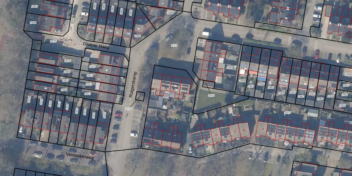 Het perceel waarop Rutgerskamp 6 staat heeft een oppervlakte van 3805 m². Dit is een zeer groot perceel. De perceeloppervlakte wordt geregistreerd door het Kadaster. Gedetailleerde informatie over de maten van dit perceel kunt u vinden in het rapport Kadastrale kaart met maatvoering van Rutgerskamp 6.