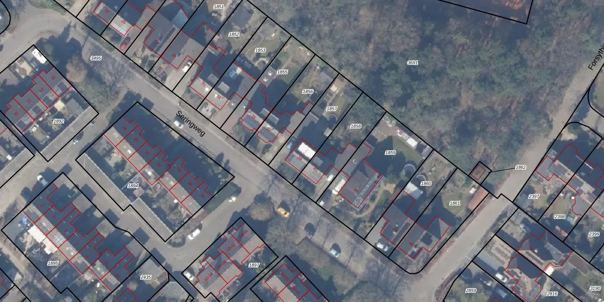 Gebruik de zoekbalk of klik op een perceel voor informatie over de adressen binnen dit perceel.