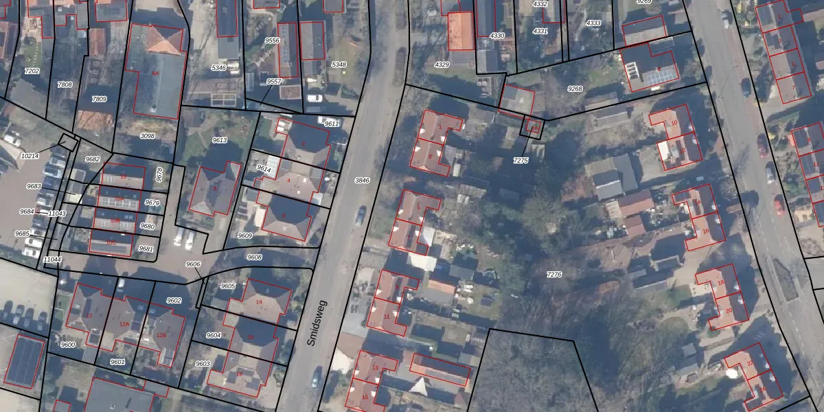 Het perceel waarop Smidsweg 5 staat heeft een oppervlakte van 7128 m². Dit is een zeer groot perceel. De perceeloppervlakte wordt geregistreerd door het Kadaster. Gedetailleerde informatie over de maten van dit perceel kunt u vinden in het rapport Kadastrale kaart met maatvoering van Smidsweg 5.