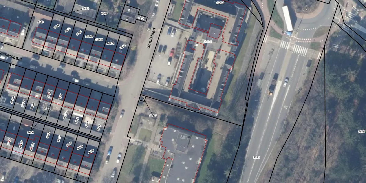 Het perceel waarop Smutslaan 25-A staat heeft een oppervlakte van 3748 m². Dit is een zeer groot perceel. De perceeloppervlakte wordt geregistreerd door het Kadaster. Gedetailleerde informatie over de maten van dit perceel kunt u vinden in het rapport Kadastrale kaart met maatvoering van Smutslaan 25-A.