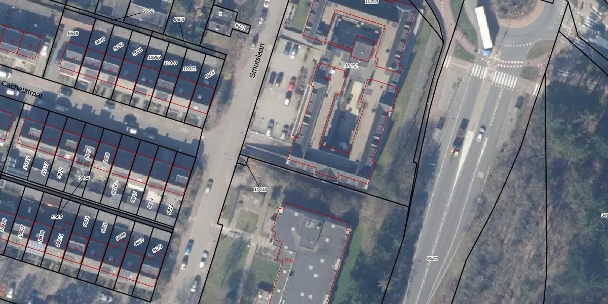 Het perceel waarop Smutslaan 25-B staat heeft een oppervlakte van 3748 m². Dit is een zeer groot perceel. De perceeloppervlakte wordt geregistreerd door het Kadaster. Gedetailleerde informatie over de maten van dit perceel kunt u vinden in het rapport Kadastrale kaart met maatvoering van Smutslaan 25-B.