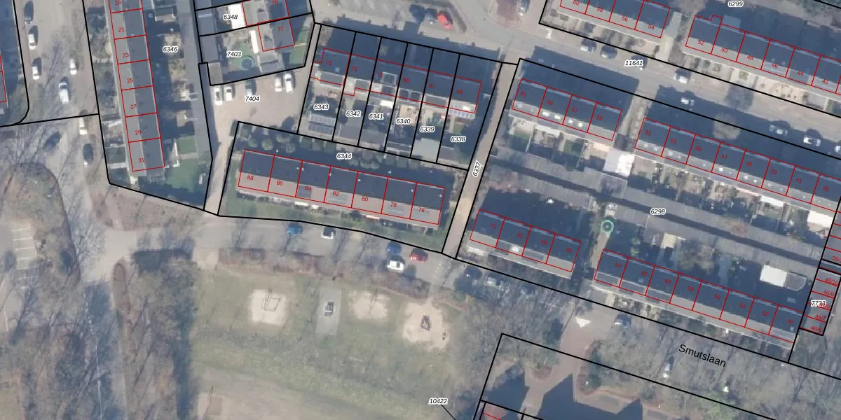 Smutslaan 76 is gelegen op kadastraal perceel EML00F6344. Deze kadastrale aanduiding is uniek en wordt gebruikt door het Kadaster om eigendomsrechten en andere zakelijke rechten vast te leggen. Het perceel maakt onderdeel uit van de kadastrale gemeente Ermelo.
