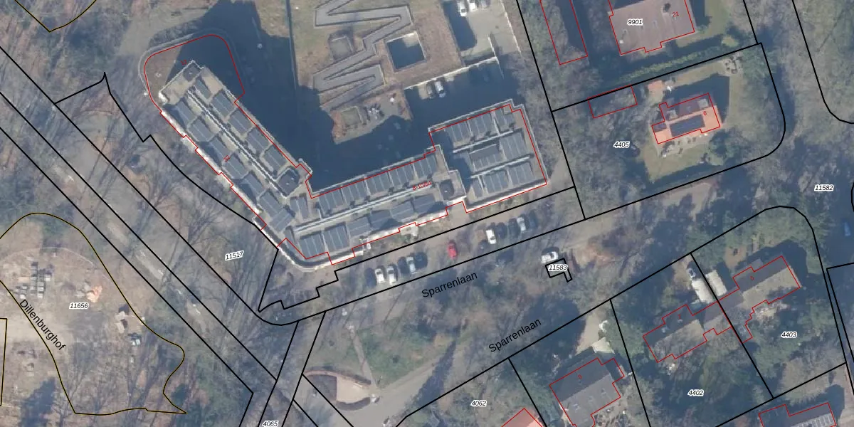 Het perceel waarop Sparrenlaan 10-1 staat heeft een oppervlakte van 9853 m². Dit is een zeer groot perceel. De perceeloppervlakte wordt geregistreerd door het Kadaster. Gedetailleerde informatie over de maten van dit perceel kunt u vinden in het rapport Kadastrale kaart met maatvoering van Sparrenlaan 10-1.