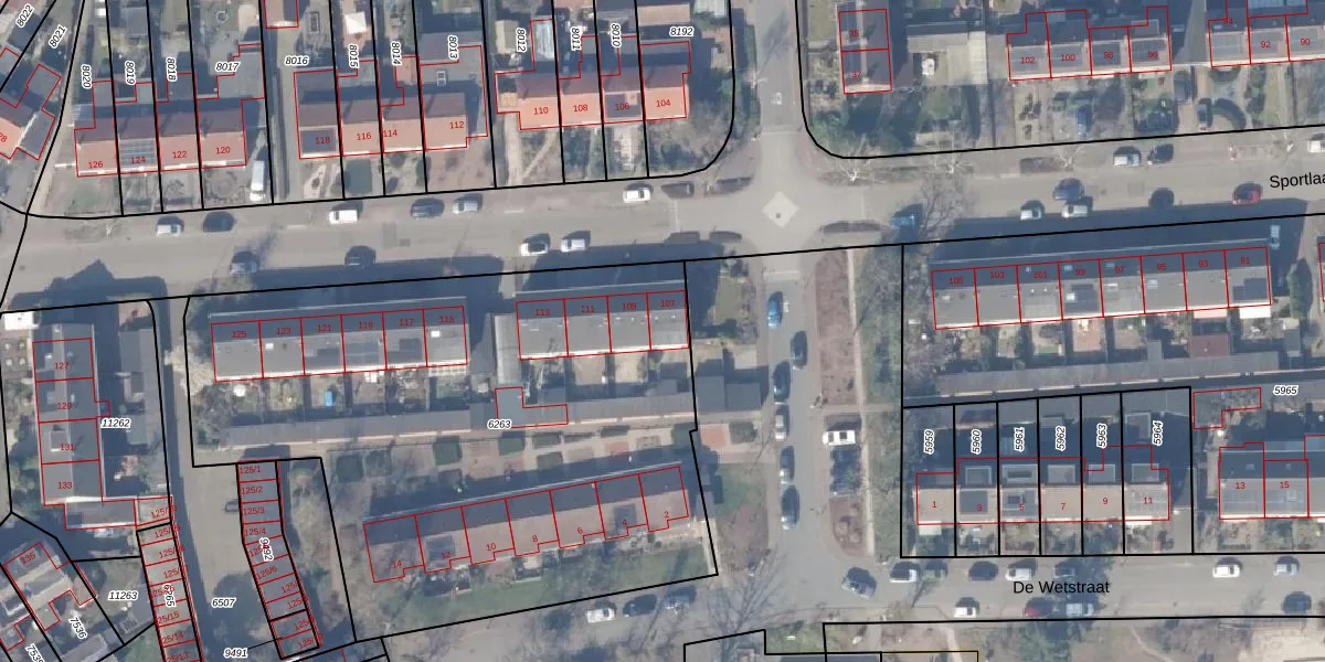 Het perceel waarop Sportlaan 107 staat heeft een oppervlakte van 3375 m². Dit is een zeer groot perceel. De perceeloppervlakte wordt geregistreerd door het Kadaster. Gedetailleerde informatie over de maten van dit perceel kunt u vinden in het rapport Kadastrale kaart met maatvoering van Sportlaan 107.