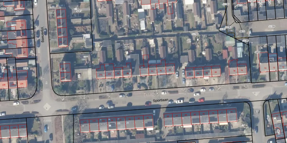 Het perceel waarop Sportlaan 94 staat heeft een oppervlakte van 8564 m². Dit is een zeer groot perceel. De perceeloppervlakte wordt geregistreerd door het Kadaster. Gedetailleerde informatie over de maten van dit perceel kunt u vinden in het rapport Kadastrale kaart met maatvoering van Sportlaan 94.
