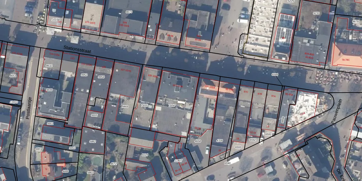Het perceel waarop Stationsstraat 103-H staat heeft een oppervlakte van 750 m². Dit is een groot perceel. De perceeloppervlakte wordt geregistreerd door het Kadaster. Gedetailleerde informatie over de maten van dit perceel kunt u vinden in het rapport Kadastrale kaart met maatvoering van Stationsstraat 103-H.