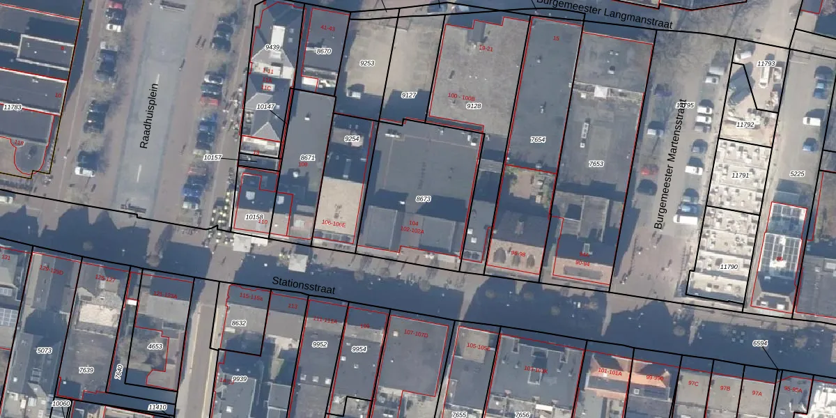 Het perceel waarop Stationsstraat 104 staat heeft een oppervlakte van 831 m². Dit is een groot perceel. De perceeloppervlakte wordt geregistreerd door het Kadaster. Gedetailleerde informatie over de maten van dit perceel kunt u vinden in het rapport Kadastrale kaart met maatvoering van Stationsstraat 104.