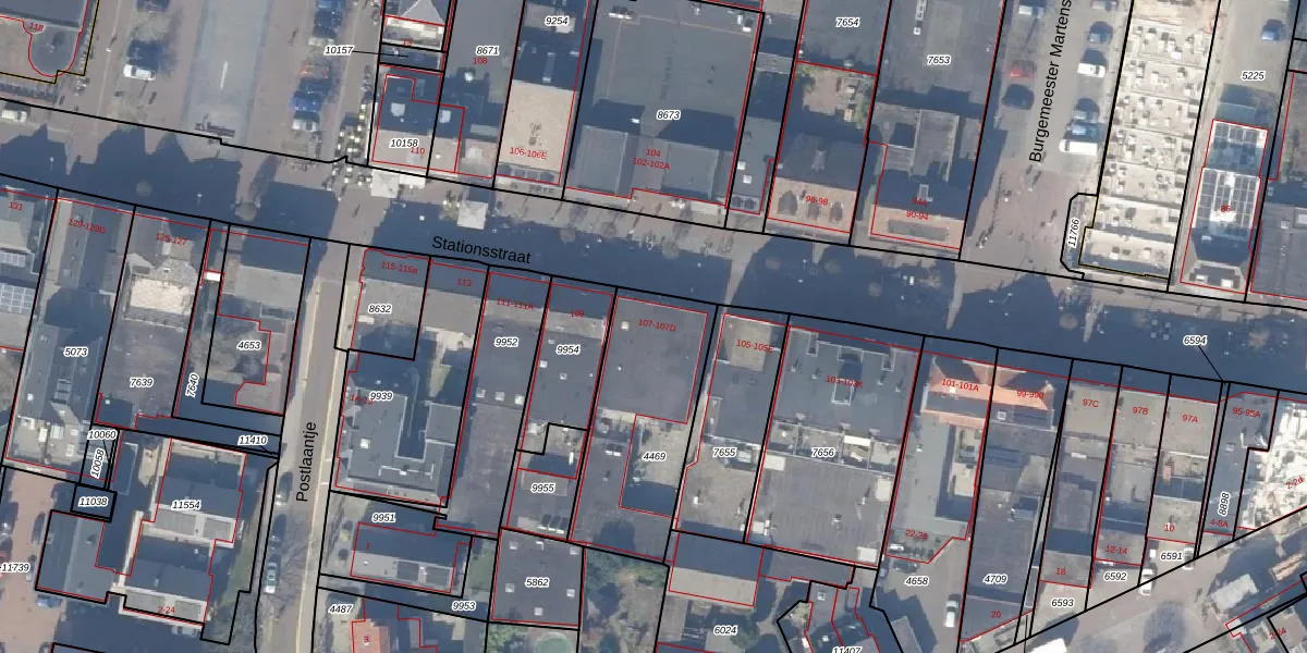 Het perceel waarop Stationsstraat 107 staat heeft een oppervlakte van 614 m². Dit is een groot perceel. De perceeloppervlakte wordt geregistreerd door het Kadaster. Gedetailleerde informatie over de maten van dit perceel kunt u vinden in het rapport Kadastrale kaart met maatvoering van Stationsstraat 107.