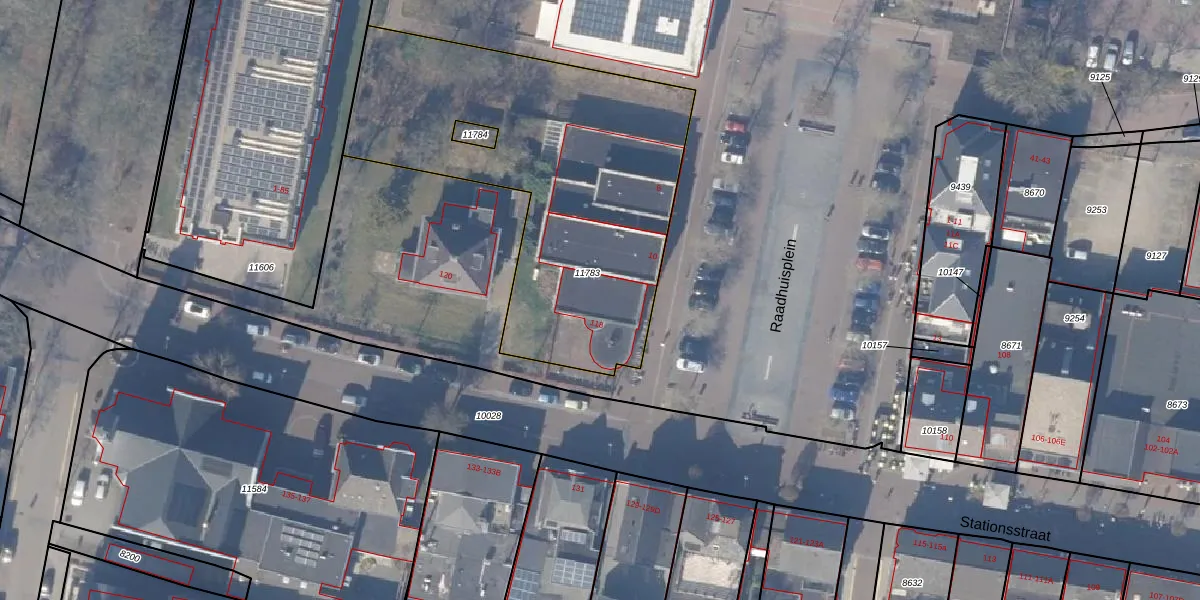 Het perceel waarop Stationsstraat 118 staat heeft een oppervlakte van 1827 m². Dit is een zeer groot perceel. De perceeloppervlakte wordt geregistreerd door het Kadaster. Gedetailleerde informatie over de maten van dit perceel kunt u vinden in het rapport Kadastrale kaart met maatvoering van Stationsstraat 118.