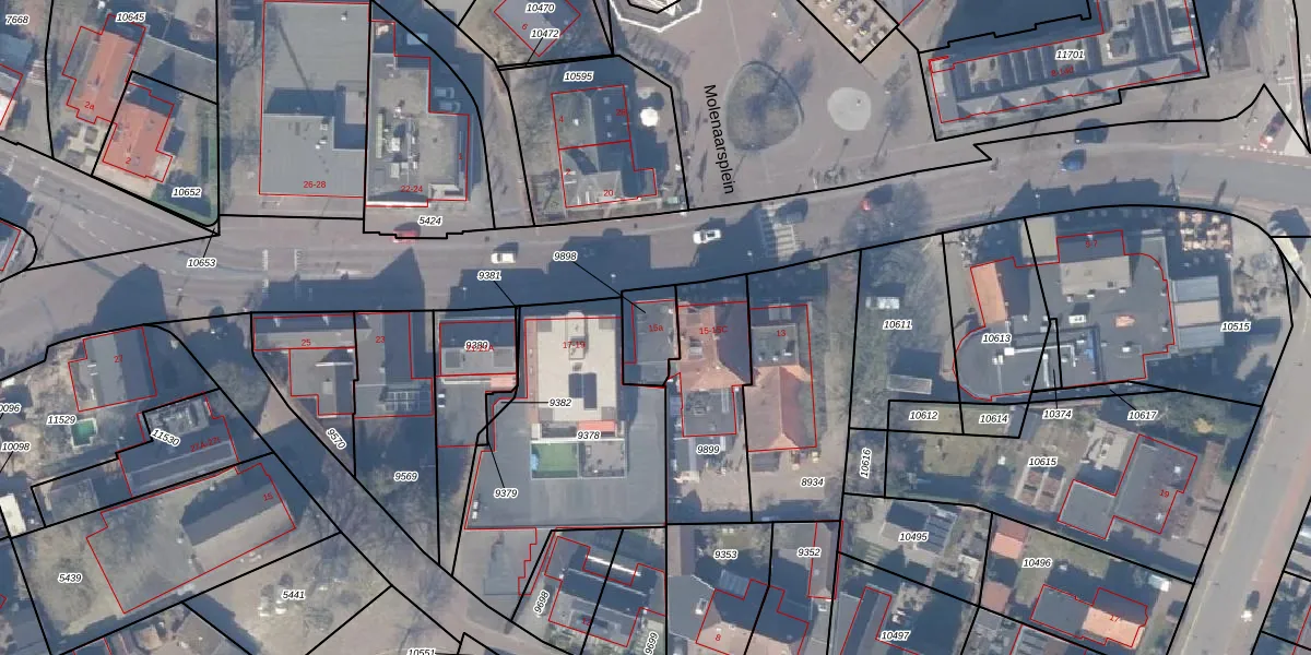 Gebruik de zoekbalk of klik op een perceel voor informatie over de adressen binnen dit perceel.