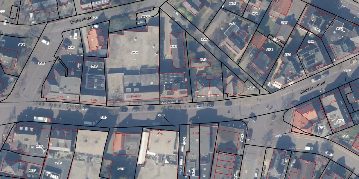 Het perceel waarop Stationsstraat 38-a staat heeft een oppervlakte van 753 m². Dit is een groot perceel. De perceeloppervlakte wordt geregistreerd door het Kadaster. Gedetailleerde informatie over de maten van dit perceel kunt u vinden in het rapport Kadastrale kaart met maatvoering van Stationsstraat 38-a.