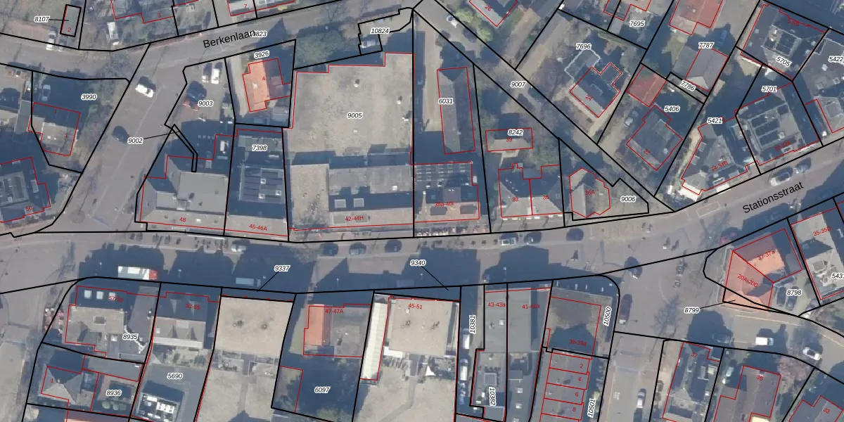 Het perceel waarop Stationsstraat 40-I staat heeft een oppervlakte van 753 m². Dit is een groot perceel. De perceeloppervlakte wordt geregistreerd door het Kadaster. Gedetailleerde informatie over de maten van dit perceel kunt u vinden in het rapport Kadastrale kaart met maatvoering van Stationsstraat 40-I.