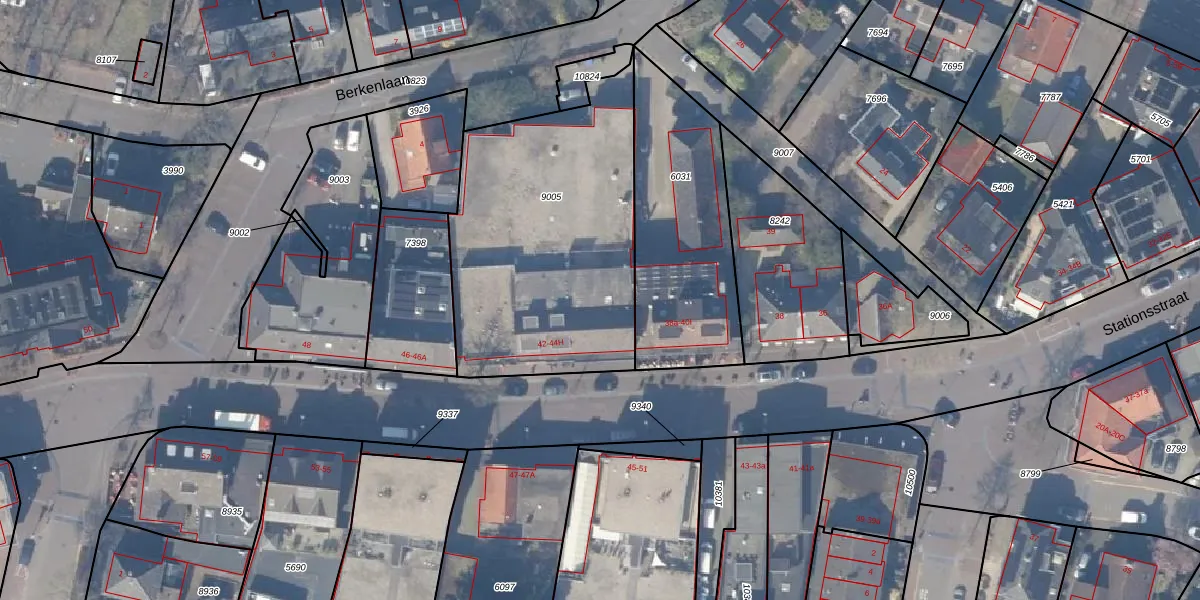 Het perceel waarop Stationsstraat 42-A staat heeft een oppervlakte van 1342 m². Dit is een zeer groot perceel. De perceeloppervlakte wordt geregistreerd door het Kadaster. Gedetailleerde informatie over de maten van dit perceel kunt u vinden in het rapport Kadastrale kaart met maatvoering van Stationsstraat 42-A.