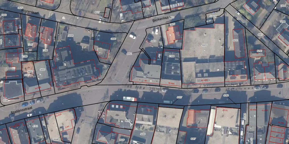 Het perceel waarop Stationsstraat 48-g staat heeft een oppervlakte van 656 m². Dit is een groot perceel. De perceeloppervlakte wordt geregistreerd door het Kadaster. Gedetailleerde informatie over de maten van dit perceel kunt u vinden in het rapport Kadastrale kaart met maatvoering van Stationsstraat 48-g.