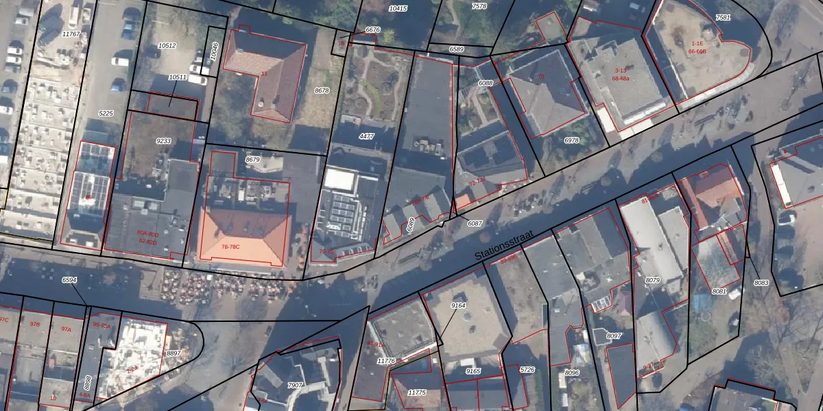Het perceel waarop Stationsstraat 74-B staat heeft een oppervlakte van 636 m². Dit is een groot perceel. De perceeloppervlakte wordt geregistreerd door het Kadaster. Gedetailleerde informatie over de maten van dit perceel kunt u vinden in het rapport Kadastrale kaart met maatvoering van Stationsstraat 74-B.