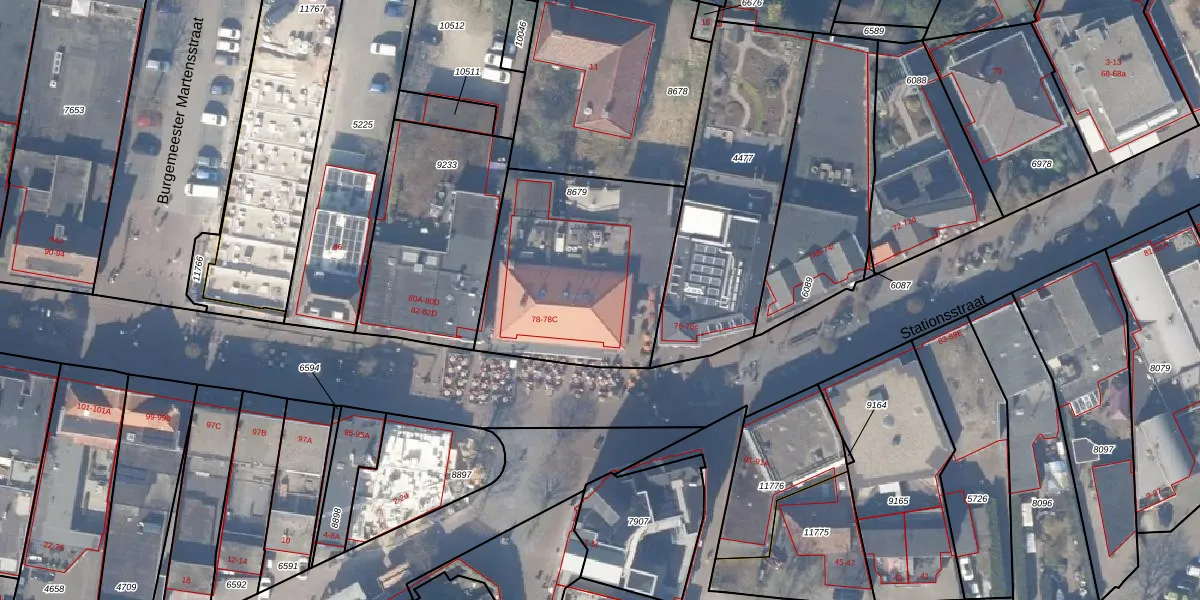 Het perceel waarop Stationsstraat 78-A staat heeft een oppervlakte van 935 m². Dit is een groot perceel. De perceeloppervlakte wordt geregistreerd door het Kadaster. Gedetailleerde informatie over de maten van dit perceel kunt u vinden in het rapport Kadastrale kaart met maatvoering van Stationsstraat 78-A.