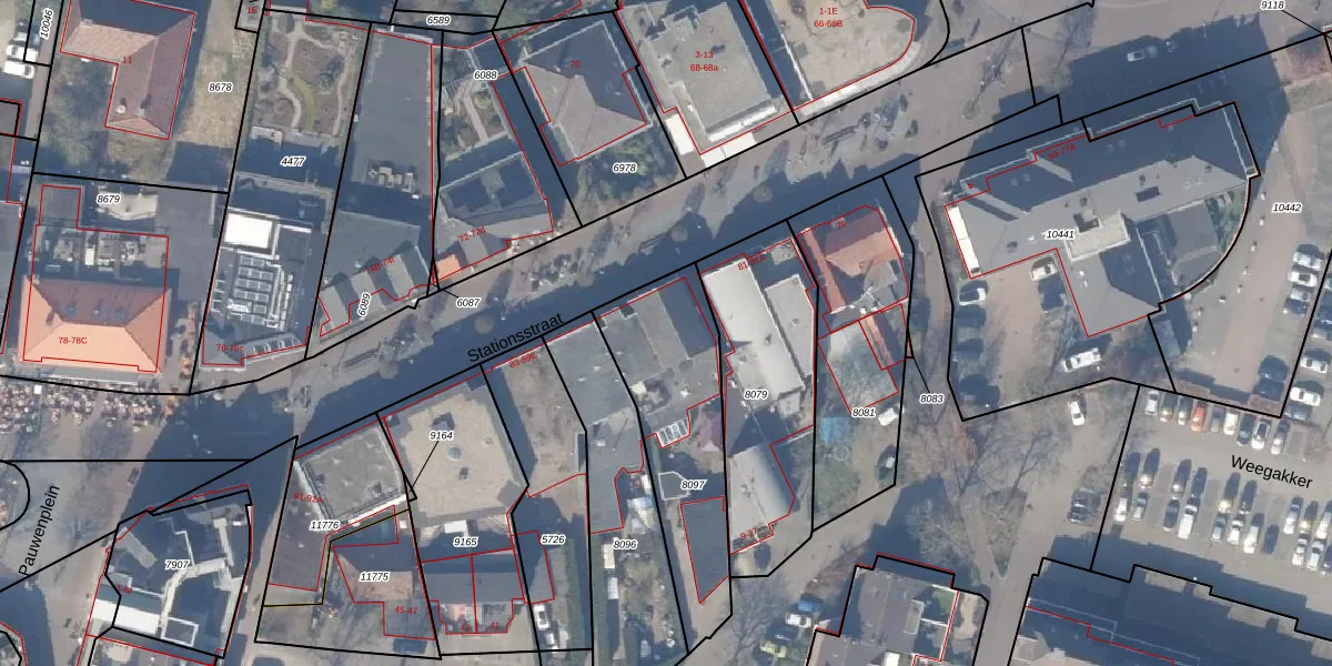 Het perceel waarop Stationsstraat 83-B staat heeft een oppervlakte van 662 m². Dit is een groot perceel. De perceeloppervlakte wordt geregistreerd door het Kadaster. Gedetailleerde informatie over de maten van dit perceel kunt u vinden in het rapport Kadastrale kaart met maatvoering van Stationsstraat 83-B.