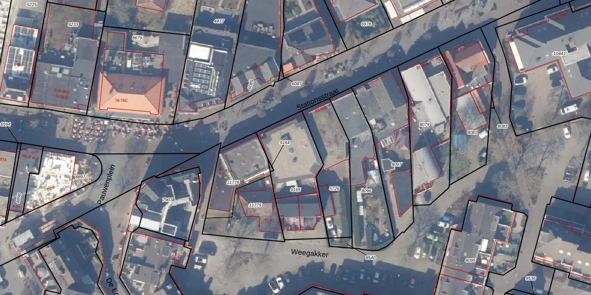 Het perceel waarop Stationsstraat 89-E staat heeft een oppervlakte van 636 m². Dit is een groot perceel. De perceeloppervlakte wordt geregistreerd door het Kadaster. Gedetailleerde informatie over de maten van dit perceel kunt u vinden in het rapport Kadastrale kaart met maatvoering van Stationsstraat 89-E.
